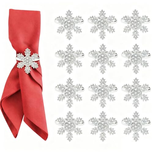 ACTOYS Portatovaglioli Natalizi, Porta Tovaglioli Natale, Ferma Tovaglioli Natalizi, Anelli di Porta Tovagliolo, Portatovaglioli, Addobbi Tavola Natalizia, Capodanno (Fiocchi di neve Argento, S)
