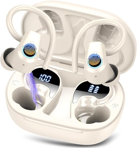 Cuffie Bluetooth Sport, 2025 Auricolari Bluetooth 5.3 con 4 ENC Cancellazione Rumore Mic, 50 Ore Cuffie Wireless HiFi Stereo, IP7 Impermeabili, Ricarica Rapida, Cuffiette Bluetooth per Running Bianco