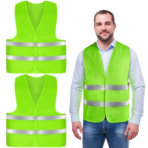 AYBUY GIUBBOTTO SICUREZZA RIFLETTENTE, 2 PEZZI GILET ALTA VISIBILITÀ UNISEX RIFLETTENTI A 360°, VISIBILE GILET DI LAVORO RIFLETTENTE PER CANTIERE, CONDUCENTI, VERDE FLUORESCENTE